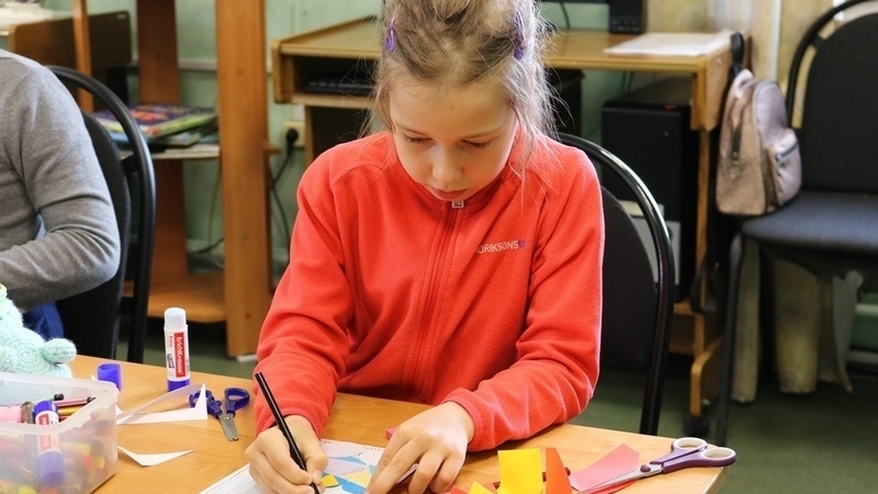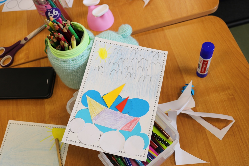 Затем дети под руководством библиотекаря приступили к созданию открытки в технике аппликации. Участники с увлечением вырезали детали корабля и волны из цветной бумаги, приклеивали их к основе из картона, а затем раскрашивали карандашами или фломастерами, проявляя свою фантазию.