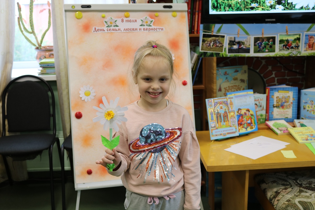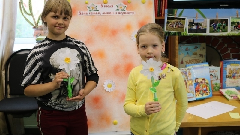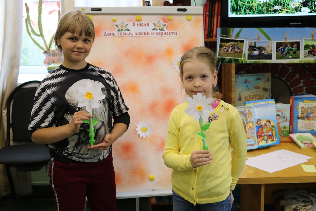 Дети узнали, что стало традицией в этот день дарить своим родителям ромашку, как символ Дня семьи, любви и верности и затем под руководством библиотекаря приступили к созданию цветочного подарка для самых близких и родных.