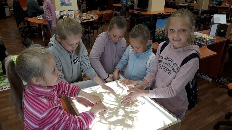 После мероприятий школьники с удовольствием задержались в отделе. Ребята смогли почитать интересные детские журналы и книги по программированию, порисовать песком на специальном световом планшете, поиграть в настольные игры.