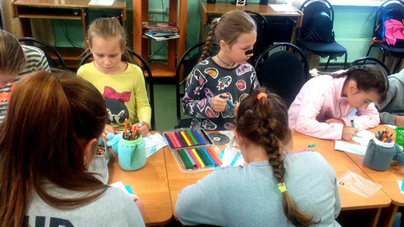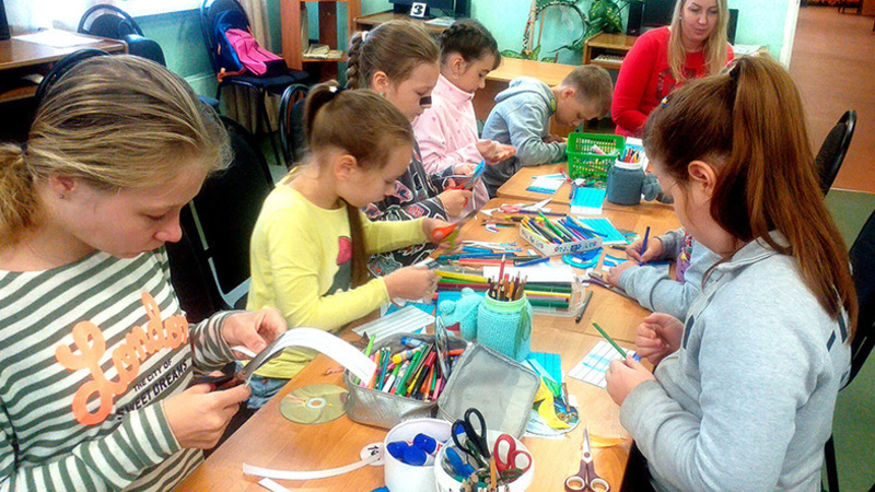 Затем дети под руководством сотрудника отдела изготовили поделку в стиле объемной аппликации. Для участников заранее был распечатан шаблон, который они разрисовали карандашами, фломастерами, вырезали и приклеили на основу. Затем каждый украсил на свое усмотрение.