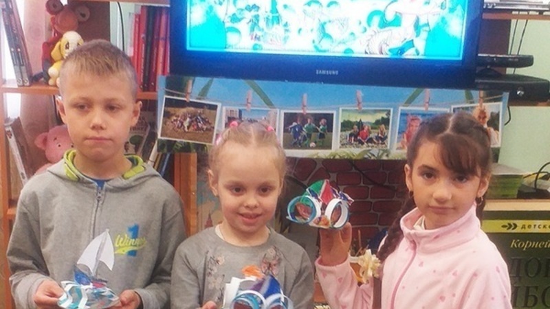 На этот раз ребята сделали корабль-траулер на волнах. Прежде чем приступить к работе, библиотекарь рассказала об истории праздника.