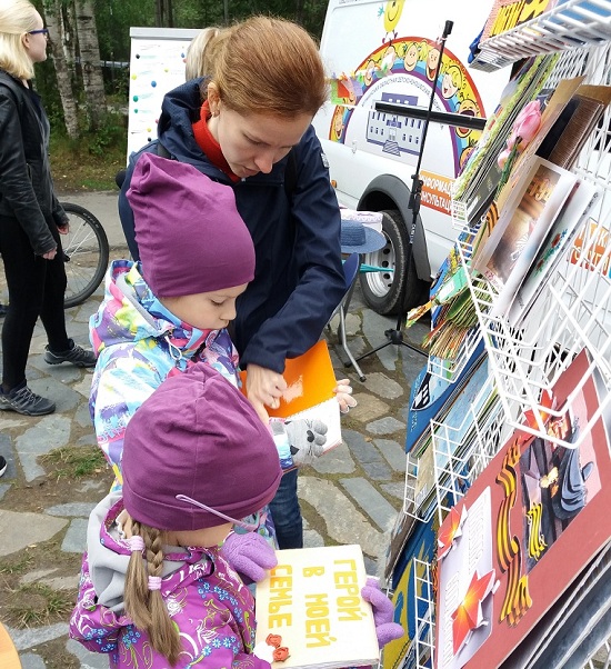 Среди книг были издания, посвященные одной из главных тем Фестиваля «Табуретка-2019» – 75 годовщине разгрома немецко-фашистских войск в Заполярье и событиям Петсамо-Киркенесской операции. Они вызвали неподдельный интерес горожан и особенно представителей городской общественной организации «Дети Великой Отечественной войны» г. Мончегорска, которые с удовольствием познакомились с материалами выставки. Областная детско-юношеская библиотека получила в подарок от руководителя организации и автора, Батраковой Ларисы Петровны, книгу «Мадонна Великой Отечественной»: слово о маме».