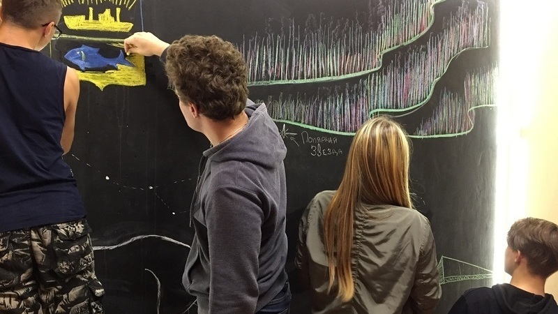 Волонтеры проявили фантазию, художественные способности, креатив, самостоятельно продумали композицию картины. В созданной композиции запечатлены узнаваемые символы нашего северного края: герб Мурманска, памятник Алеше, северное сияние, белый медведь, северный олень, тюлень, полярная звезда. Читатели библиотеки смогут по достоинству оценить результат их труда.