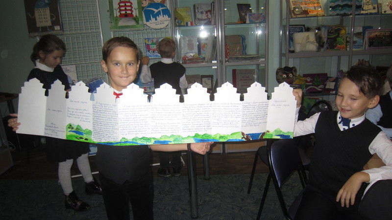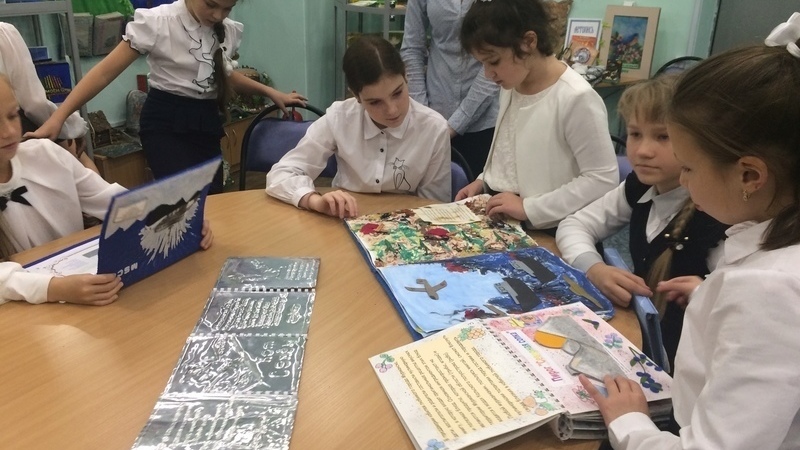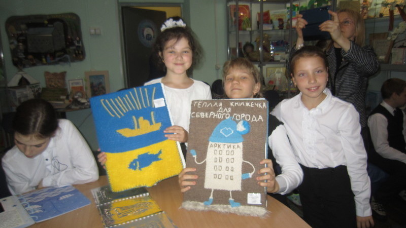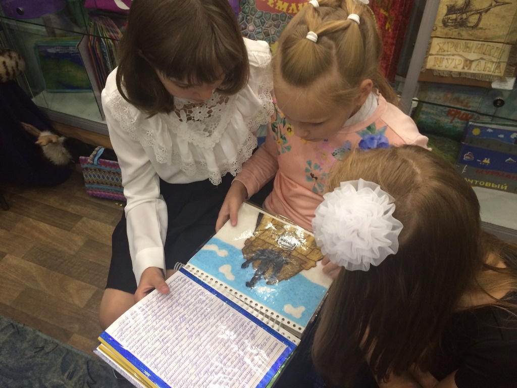 В конце занятия школьники с большим интересом разглядывали книги участников Международного конкурса детской рукописной книги, посвященные Мурманску.