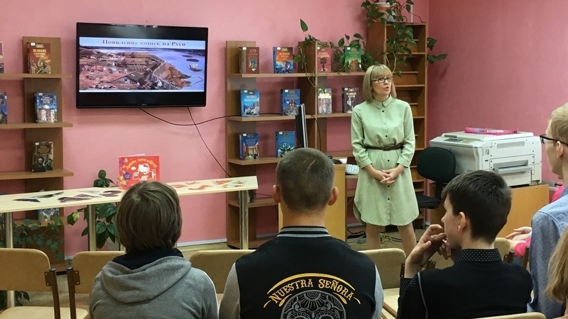 Библиотекарь отдела рассказала о происхождении кошек, их психологических повадках, об интересных фактах из жизни этих замечательных животных. С помощью электронной презентации ребята увидели памятники, посвященные кошкам, поиграли в игру «Собери кота», услышали истории о необычных кошках.