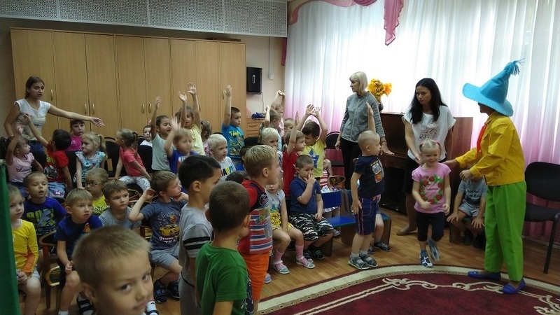 Особенно ребятам понравилась игра «Волшебный мяч», где под музыку они передавали друг другу мячики и выполняли желания Незнайки. Мероприятие закончилось веселым танцем.