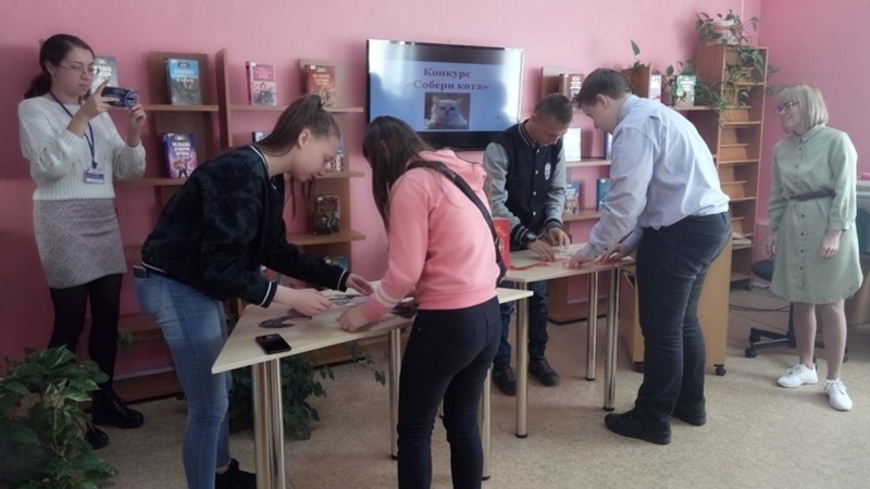 Все дети с удовольствием приняли активное участие в викторине о кошках, наперегонки собирали пазлы, в результате получили фигуры двух огромных и очень симпатичных кошек.