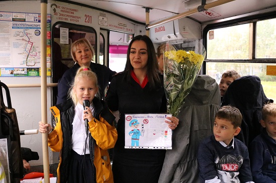Акция «Безопасный троллейбус» стала традиционной для партнерского проекта Областной детско-юношеской библиотеки, ОАО «Электротранспорт» г. Мурманска и ГИБДД по Мурманской области и совпала с днем рождения Дорожно-патрульной службы. Ребята поздравили инспектора ГИБДД Гусейнову Басти Фархад кызы с праздником, прочитали поздравительные стихи и вручили цветы.