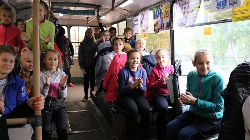 Ребята очень запереживали, когда у троллейбуса слетели «усики» с проводов, водитель с легкостью устранил неполадки и привел в движение троллейбус.