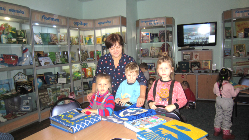 В конце занятия дошкольники посмотрели видеосюжеты о городе Мурманске и традиционно познакомились с необычными книгами участников Международного конкурса детской рукописной книги номинации «Мой мачтовый город».