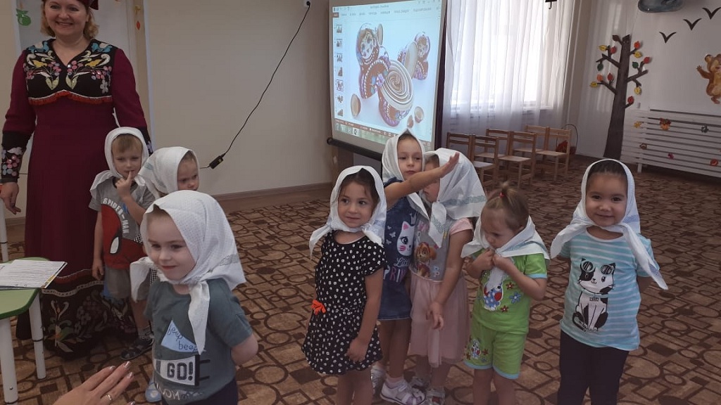Светлана Юрьевна Сверчкова в игровой форме знакомила воспитанников детского сада с историей русской игрушки Матрешки. Ребята из младшей и средней групп превращались в матрешек, играли в веселую игру « Я гуляла по лесочку», собирали на скорость настоящую матрешку. Каждая группа сделала себе матрешку – сувенир, а в конце все дружно водили хоровод.