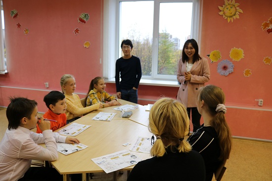 В отделе искусства и творчества преподаватели из Китая и Японии познакомили ребят с несколькими словами, иероглифами и символами своих стран. Всем очень понравилось такое путешествие по разным странам!