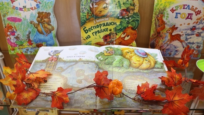 Наших юных читателей встречает такая же осенняя яркая книжная выставка. Дошколята вместе с родителями совершат увлекательные путешествия по страницам разноцветных книг и познакомятся с веселыми героями. Тёплые и уютные рисунки чудесно дополняют эти сказочные истории и познакомят юных читателей с удивительным миром природы.