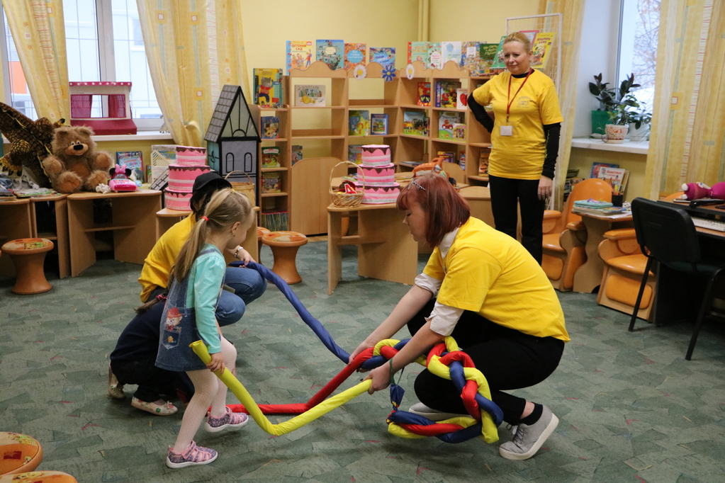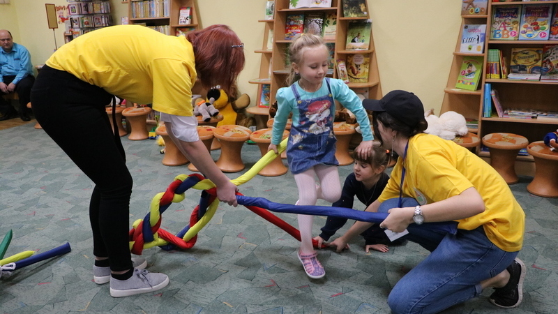 Ребята танцевали и играли с волонтерами в читальном зале «Сказка».