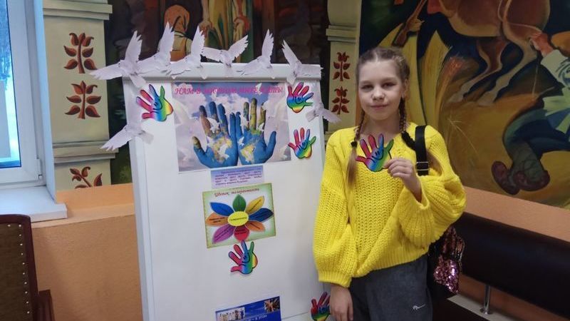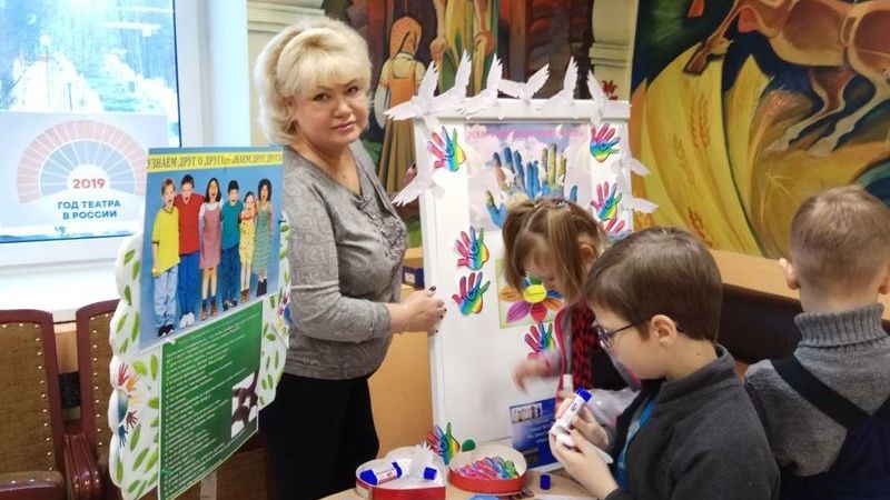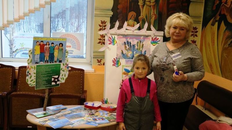 В знак доброты и уважения друг к другу гости библиотеки совместно создали из разноцветных ладошек социальный плакат «Нам в мирном мире жить!», чтобы сказать всем окружающим: "Мы – вместе, мы – едины, мы – будущее России!"