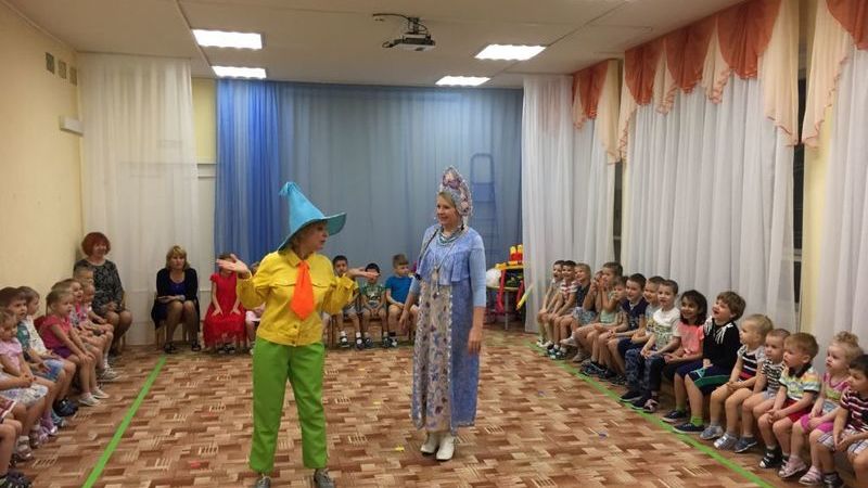 В гости к ребятам пришли литературные герои – Незнайка и Василиса Премудрая. Вместе с дошколятами они отправились в веселое путешествие в сказочный город коротышек, где малышей ждали самые разные развлечения:
