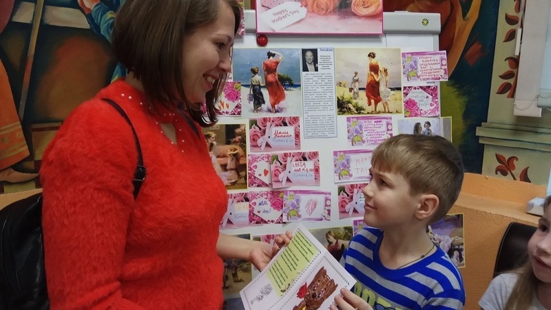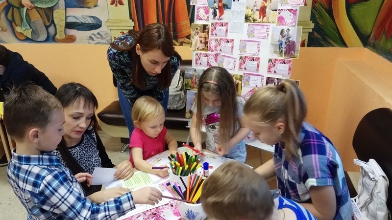 Читатели библиотеки оформили яркий информативно-развлекательный постер распечатанными копиями картин всемирно известного итальянского книжного иллюстратора и художника Пино Даени. Мастер написал много работ на тему материнства, тонко передав нежные чувства, заботу и любовь к своему ребенку, создал более 3000 книжных обложек, плакатов для кино и журнальных иллюстраций. Его работы помещены на сотни книжных обложек таких известных писательниц как: Даниэлла Стил, Сильвия Саммерфилд и Аманда Эшли. Мурманчане и гости нашего города рассказали трогательные истории о мамах, бабушках, прочитали стихи и разместили в центре постера свои благодарности и пожелания мамам. Для маленьких читателей были приготовлены поздравительные открытки-раскраски, которые малыши с удовольствием оформили цветными карандашами и фломастерами, чтобы вручить своим любимым мамам. Время в мастерской радости пролетело незаметно.