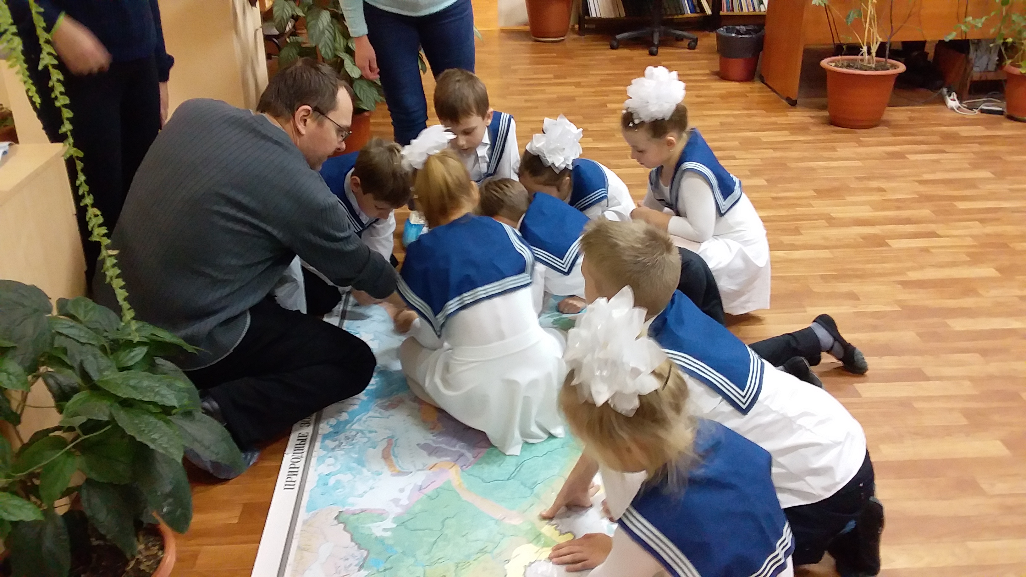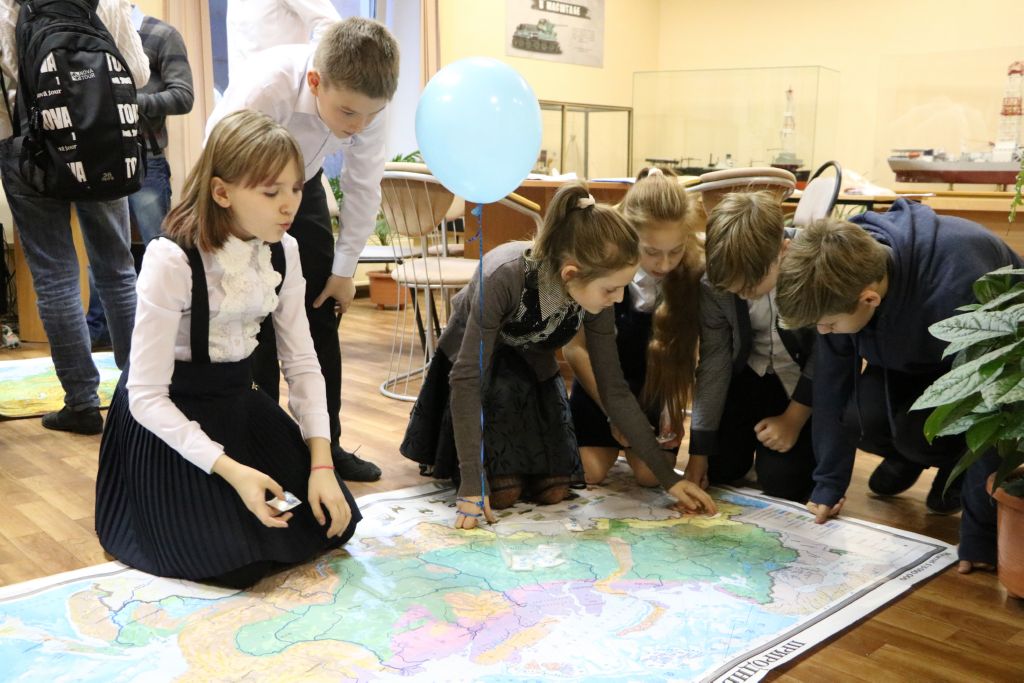 Арктическая. Участники рассматривали карту дрейфа полярной станции, писали географический диктант.