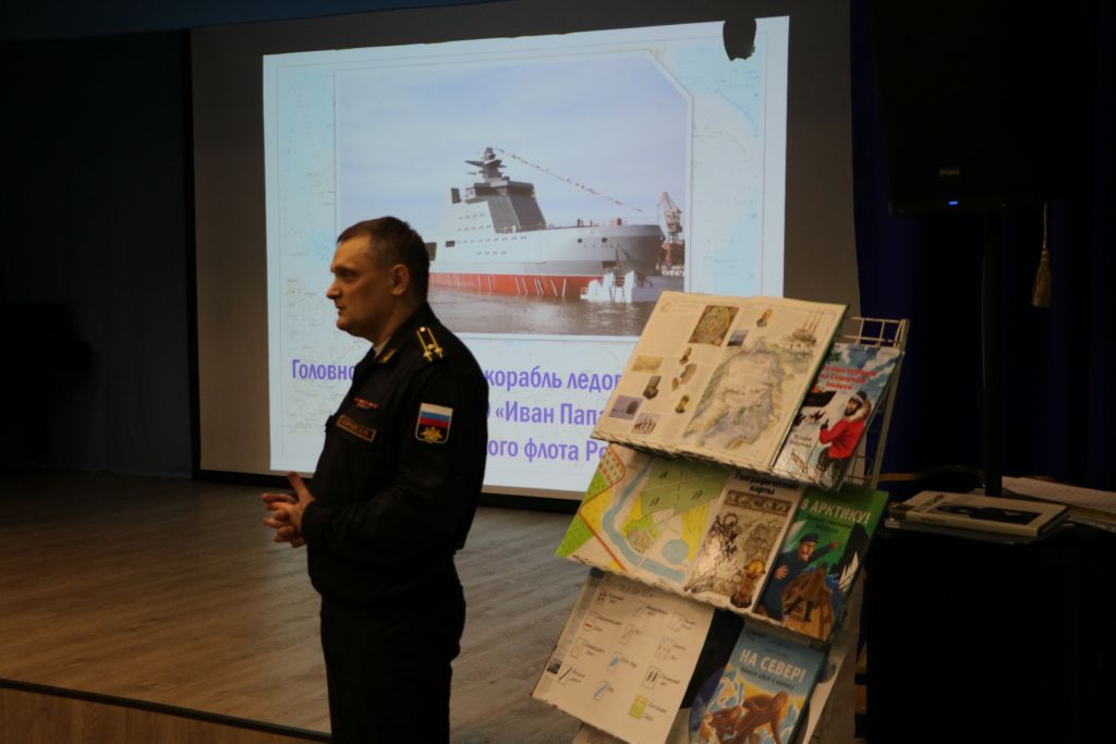 Возвращение всех путешественников с маршрута ждал Алексей Викторович Корнис, начальник отдела гидрографической службы Северного флота. Он интересно рассказал о современных исследованиях Арктики и новейшем патрульном корабле ледового класса «Иван Папанин», спущенном на воду в Санкт-Петербурге.