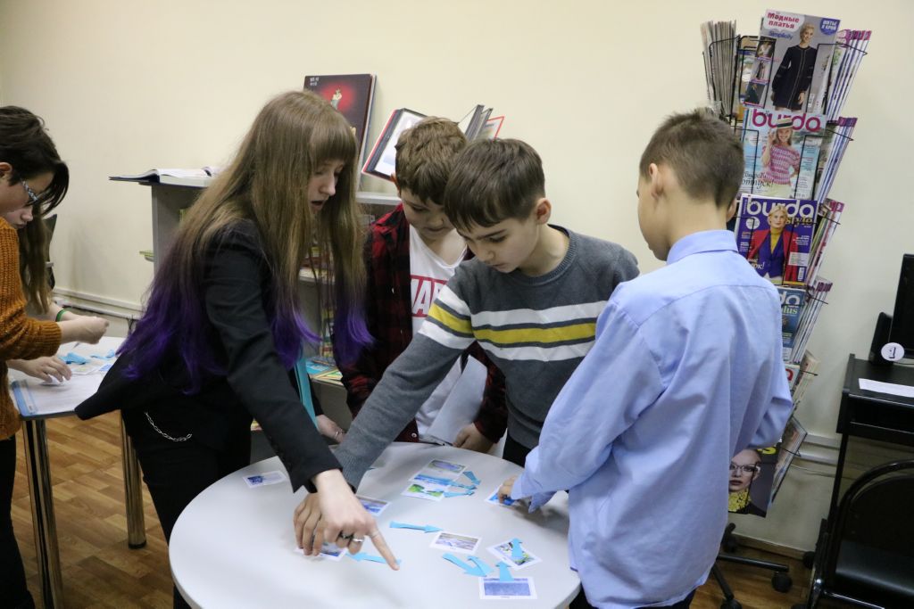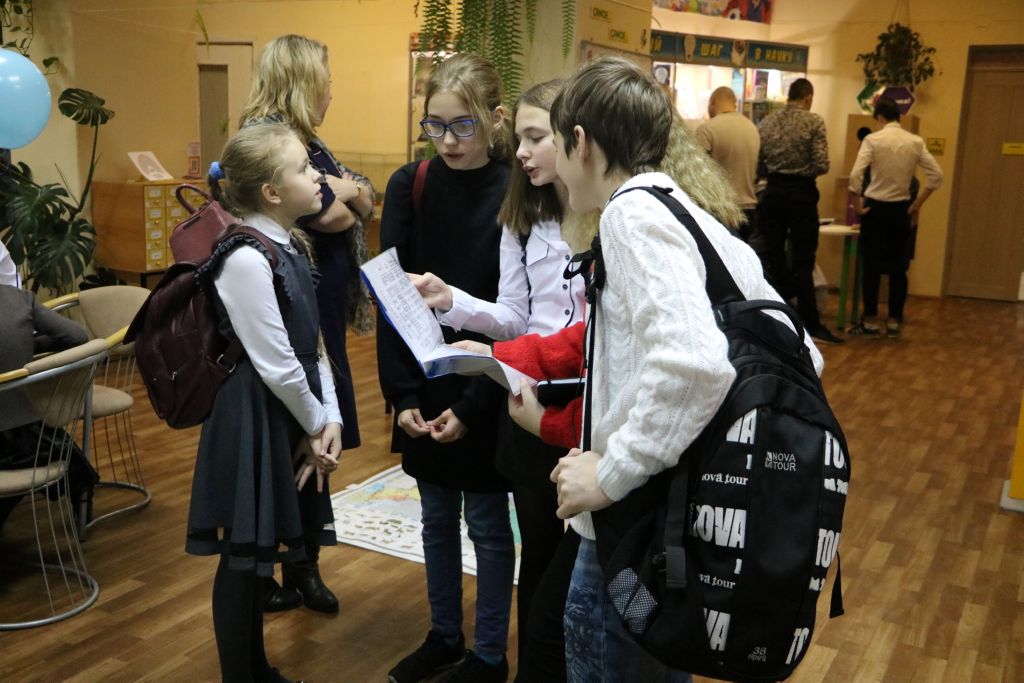 В разных помещениях библиотеки с помощью волонтеров, студентов учебных заведений города, организованы станции: