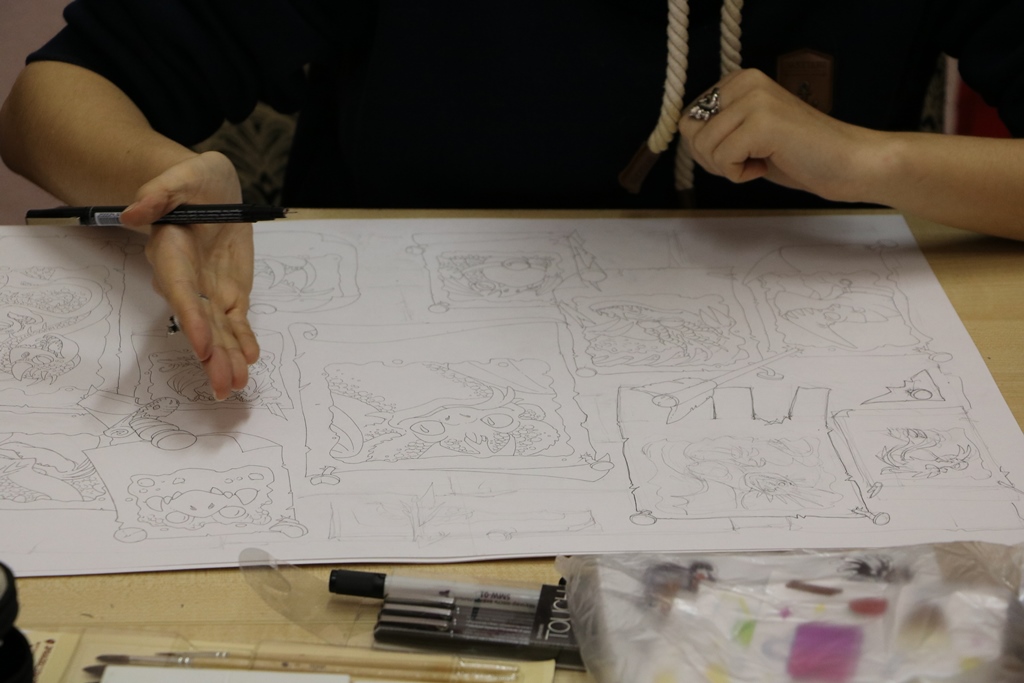 Все посетители смогли увидеть процесс создания плаката, начиная с эскиза и заканчивая работой в цвете.
