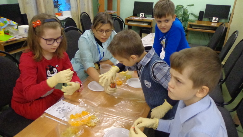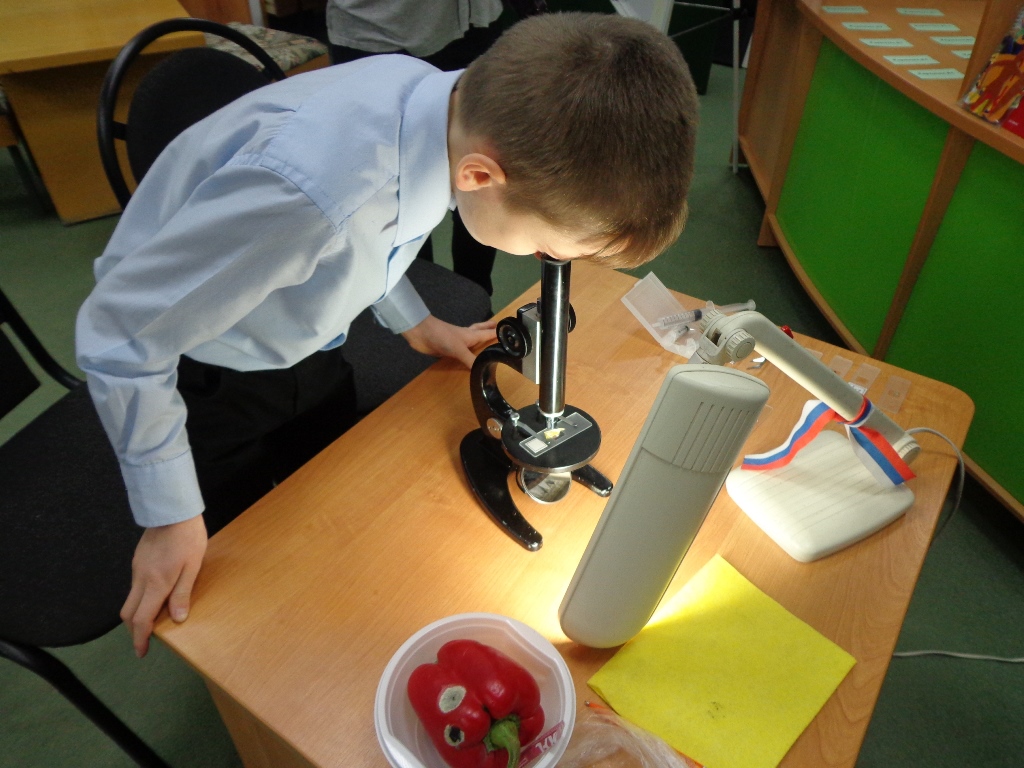Посетив урок «Микроведения» юные исследователи не только узнали о том, какие микробы вызывают различные заболевания, но и рассмотрели в микроскоп, из чего состоит кусочек мандарина, плесень на продуктах, капелька воды из аквариума.