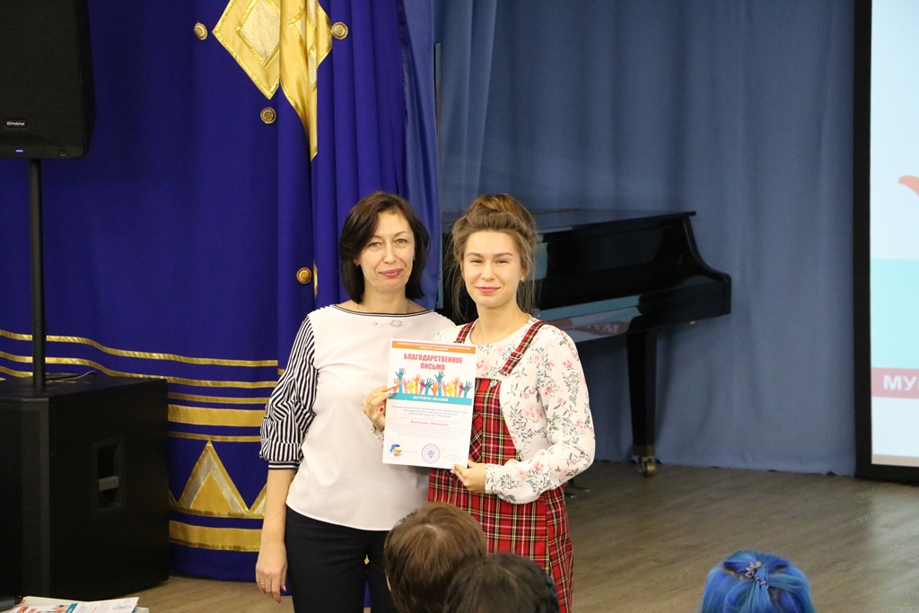 За вклад в развитие волонтерского движения, участие в значимых культурно-социальных проектах Мурманской области лучшим культурным волонтерам директор библиотеки Н. В. Феклистова вручила благодарности Министерства культуры Мурманской области.