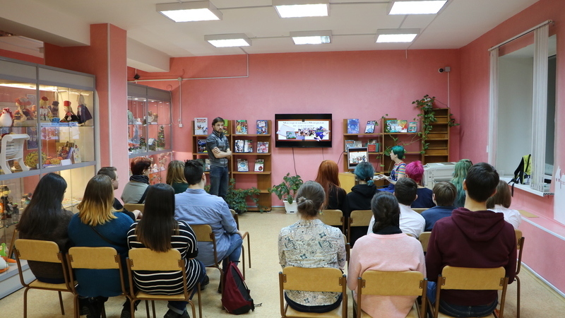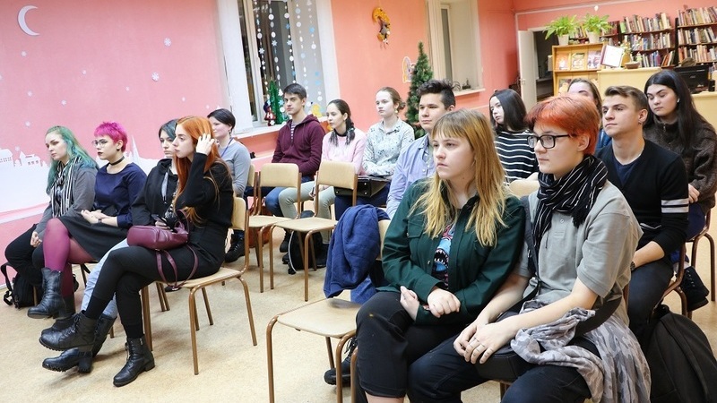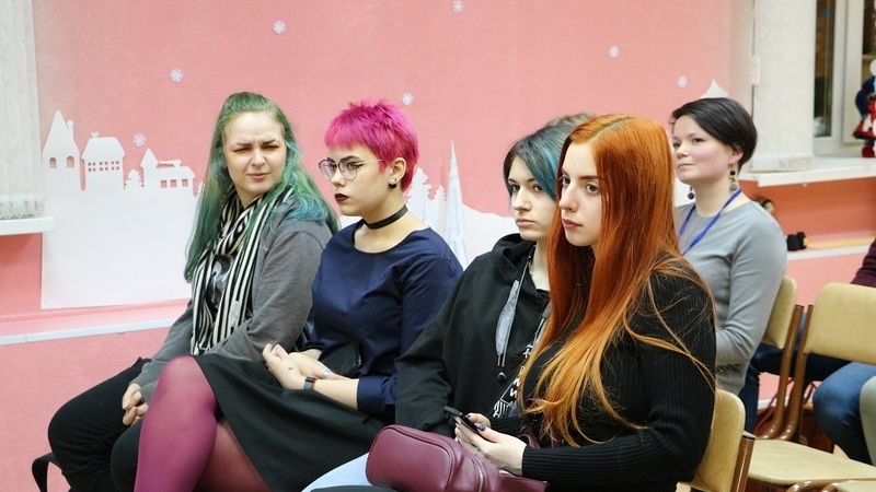 Встречу провели приглашённые спикеры: Александра Леонова, специалист по работе с молодёжью Центра развития волонтёрского движения Муниципального автономного учреждения молодёжной политики «Объединение молодёжных центров», и представитель творческого общественного объединения «Чердачный мотылёк» Владимир Беляев. В качестве слушателей выступили студенты Мурманского колледжа искусств.