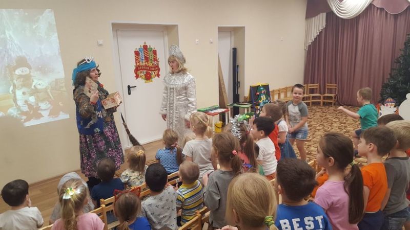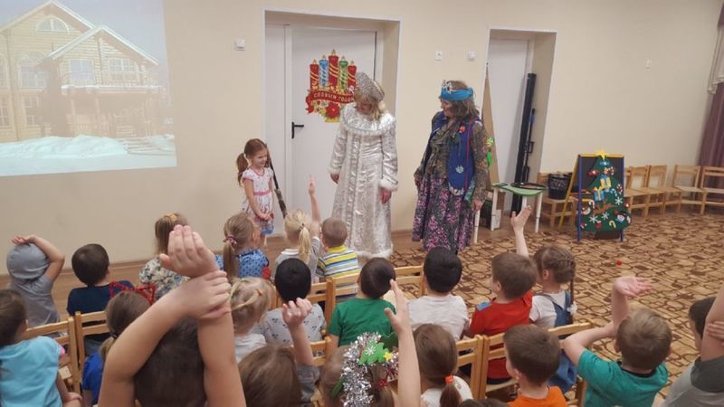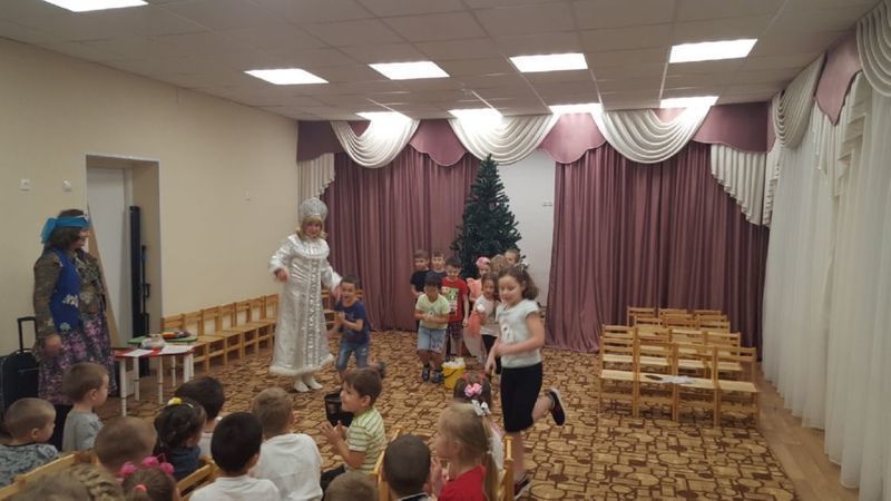 Маленькие жители поселка Спутник совершили чудесное новогоднее путешествие со Снегурочкой и Бабой-ягой. Ребятишки узнали, как встречают Новый год люди всех земных широт: в Бирме и Перу, в Англии и Швеции, Японии и Африке. Дети поучаствовали в конкурсах и играх «Найди пару», «Снежная кутерьма», «Украшаем елочку». Все вместе по японскому поверью нарисовали руками свои желания, станцевали зажигательный танец «А на улице мороз», отгадали загадки, сделали «зимнюю» зарядку и угадали Дедов Морозов разных стран.