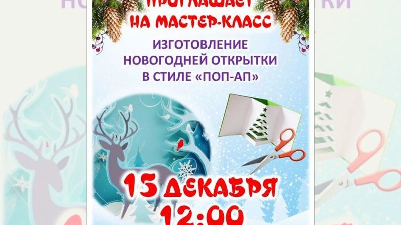 15 декабря в 12:00 в отделе искусства и творчества пройдет мастер-класс «Новогодняя открытка в стиле ПОП-АП»