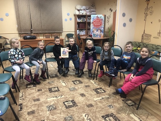 Библиотекарь познакомила дошколят со сказкой венгерского писателя Д. Урбана «Щенок, с которым никто не дружил». Слушая сказку, дети познакомились со щенком красивого синего цвета, которого зовут Питер Лазурный. Малыши очень переживали за него, ведь с ним никто не хотел дружить, он был не такой по цвету, как все.