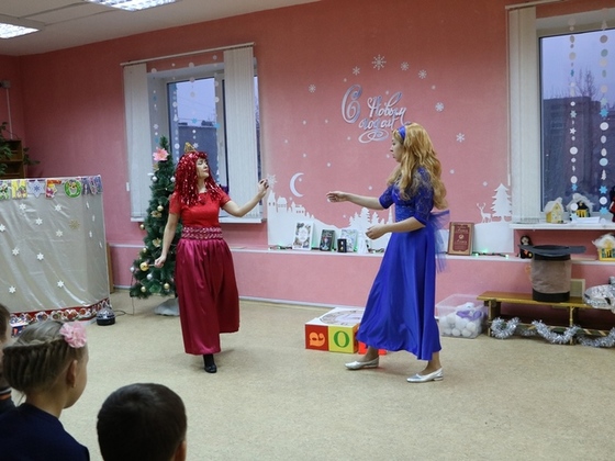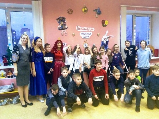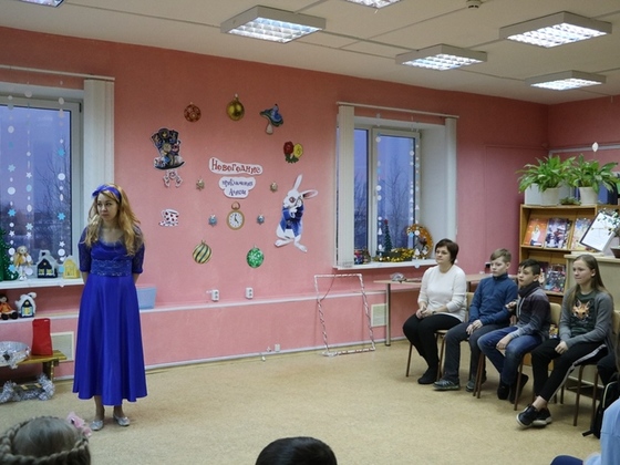 Ребят встретила сама Алиса и привела в сказочную страну, где они познакомились с Чеширским котом. Чтобы Алисе попасть домой к Новому году, ей нужно было выполнить задания злой и коварной Красной королевы. Дети, ставшие участниками сказки, помогли Алисе пройти все испытания: наряжали елочки, участвуя в эстафетах, проявили свою ловкость в игре «Усыпи собаку Брандошмыга», пели песни и танцевали.