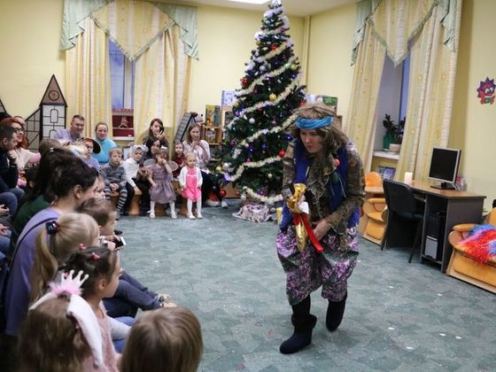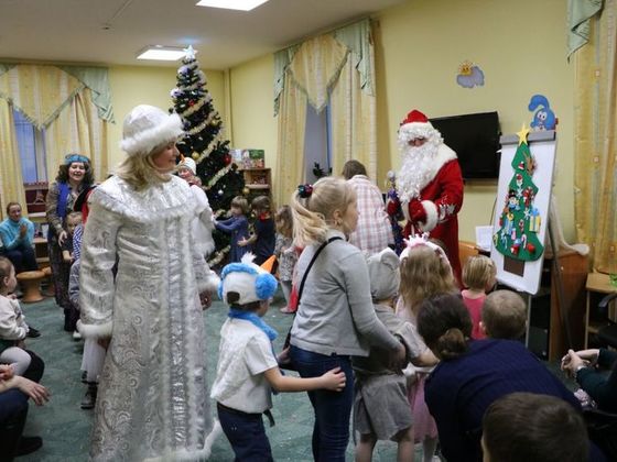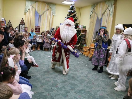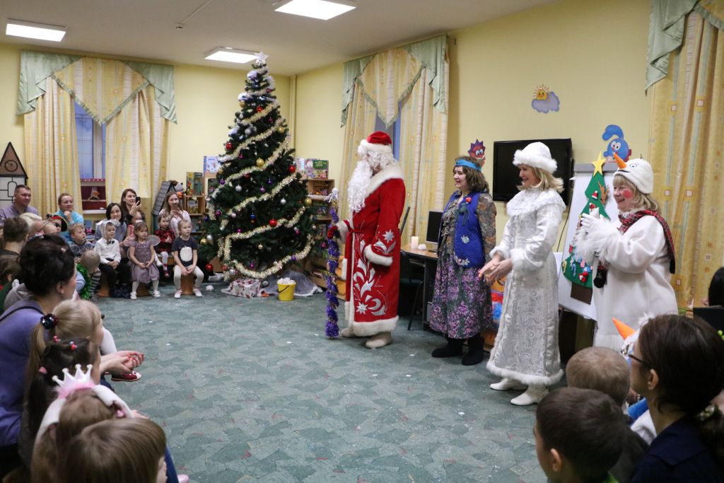 Подобревшая Баба-яга расчистила заколдованные тропинки, и долгожданный Дед Мороз попал на праздник, зажег елочку, поводил с ребятами хоровод, поиграл, а потом все вместе отправились за подарками на «Новогоднем паровозике».