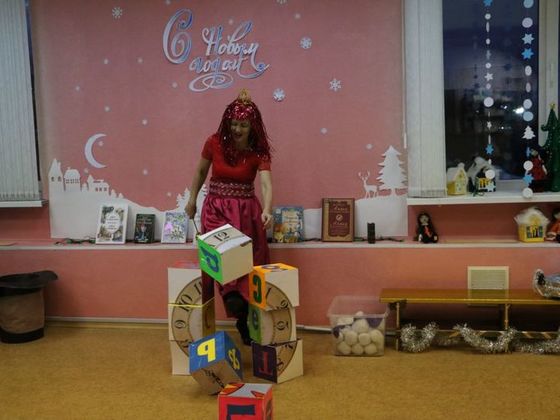 Но Красная королева просто так не хотела отпускать Алису из Страны чудес. И объявила, что цветом Нового года станет красный. Красный снег, красный лед и даже снежинки. Ребятам предложили поучаствовать в игре "Снежинкособирание". От этого зависело, какой цвет будет у Нового года. Конечно команда «Белых снежинок» победила.