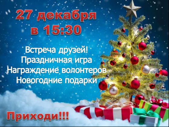 Продолжится встреча награждением волонтеров-активистов и, конечно, вручением сладких подарков, тем более, что работа волонтеров библиотеки в уходящем году заслуживает самой высокой оценки.