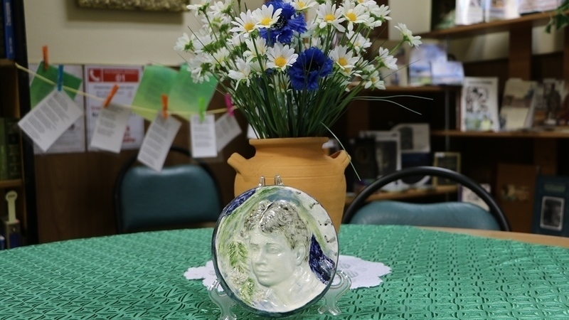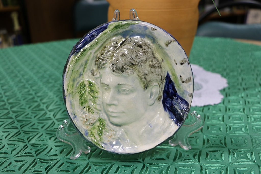 Музейную экспозицию с января месяца украсил настенный пласт (плакетка) «Сергей Есенин» (1995-2000). Это авторская работа скульптора Альберта Серафимовича Чаркина (керамика, лепка, полихромная подглазурная роспись, диаметр 14.5 см, подпись скульптора в массе на обратной стороне).