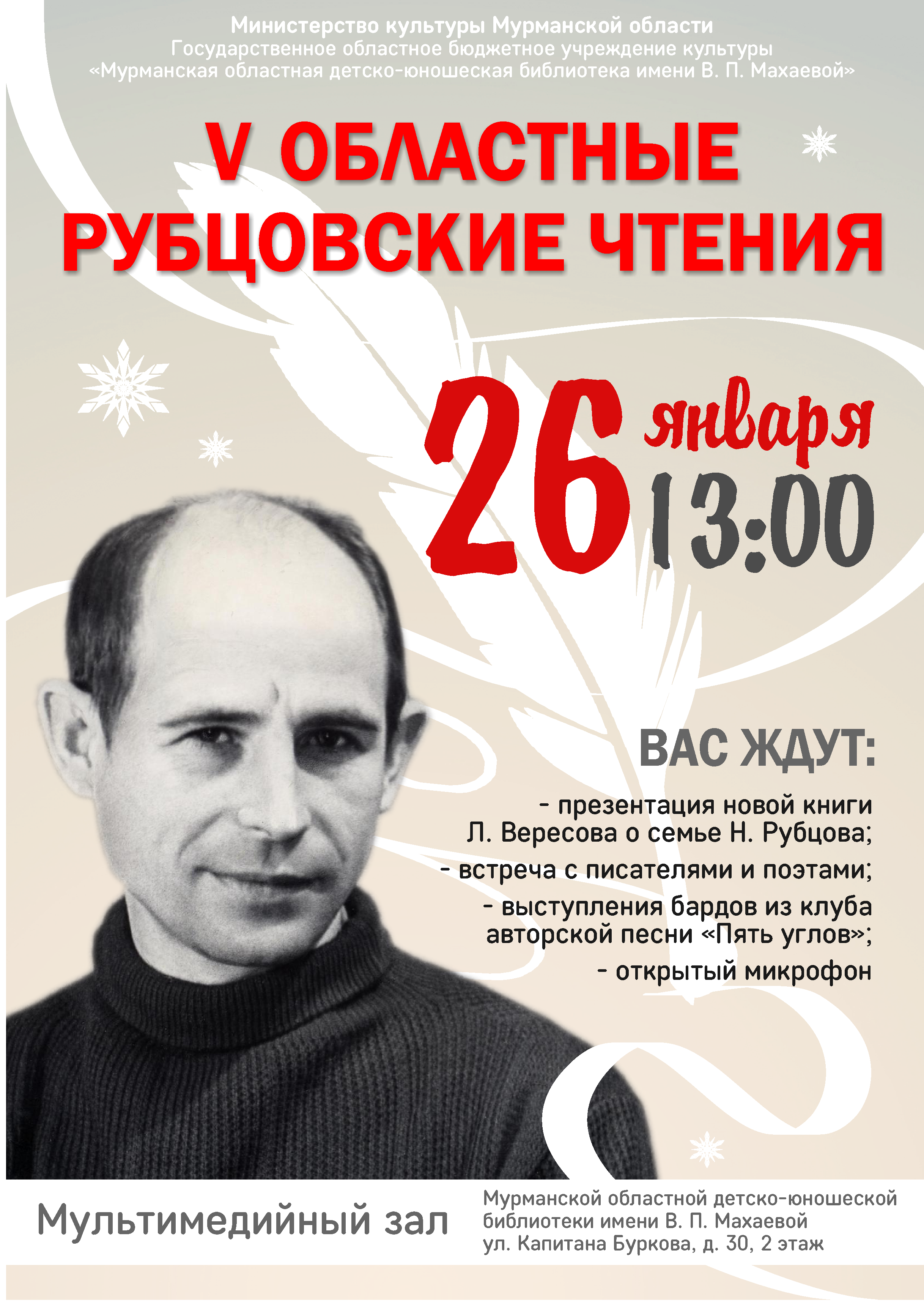 Январь в библиотеках области традиционно начинается с Рубцовских чтений. Инициатором Областных Рубцовских чтений стала Областная детско-юношеская библиотека. Затем эстафету приняли Централизованные библиотечные системы Североморска, Апатит, Кировска.