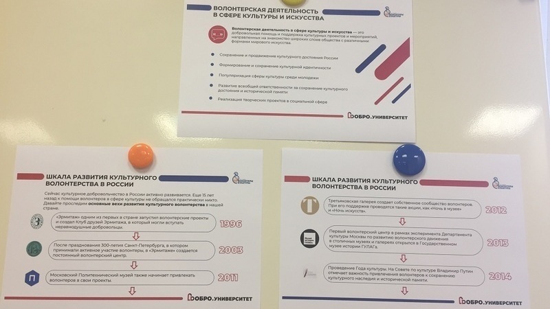 Обучение осуществлялось на платформе онлайн-университета социальных наук «Добро. Университет». На встрече ребята узнали о волонтерской деятельности в сфере культуры и искусства, о целях и задачах культурного волонтерства в России, об истории формирования и развития культурного волонтерства: работе волонтерских центров на базе музеев, действии социальной карты для волонтеров, государственных инициативах, правовом регулировании, конкурсах и премиях в сфере добровольчества.