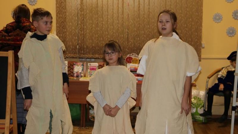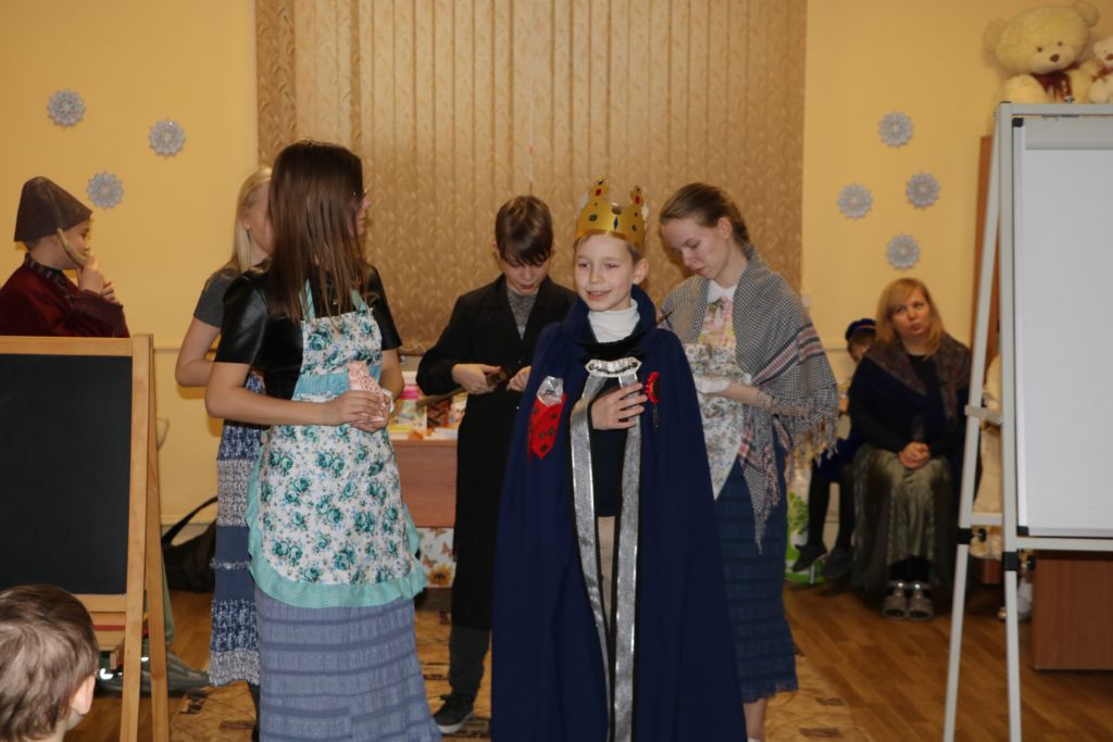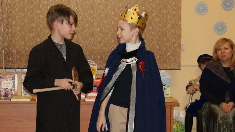 Ребята не просто посетили библиотеку – они выступили перед маленькими читателями со спектаклем «Царём быть – не ремесло».