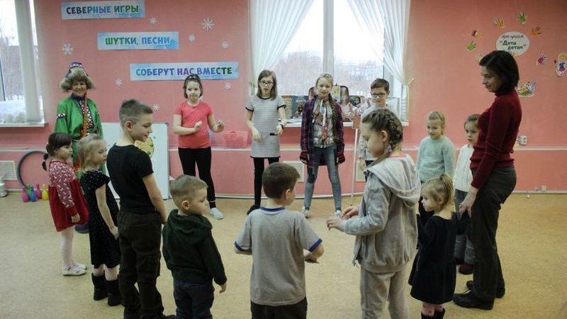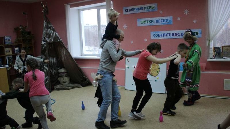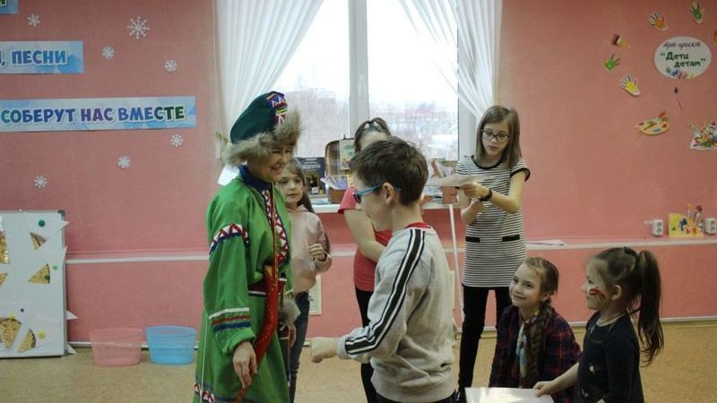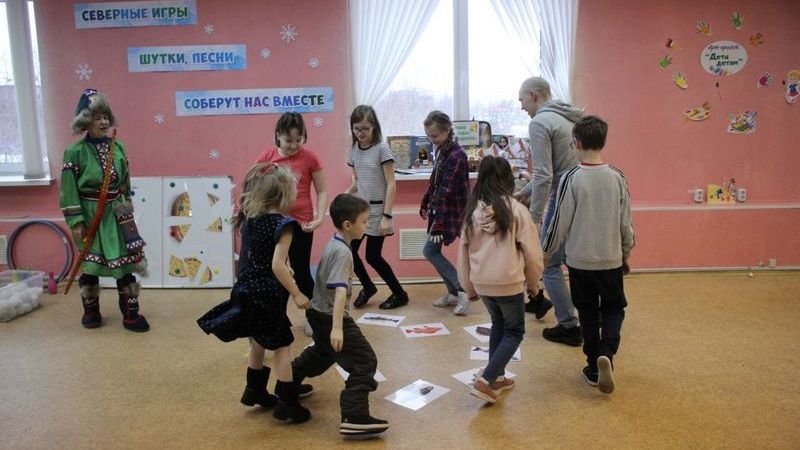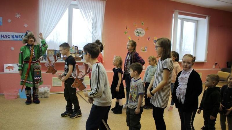 Участники мероприятия встретились с веселым саамом, который познакомил их с саамскими и поморскими играми. Дети отгадывали загадки о северных животных, собирали чернику и бруснику, участвуя в эстафете «Собери ягоды», играли в веселую игру «Веретенце».