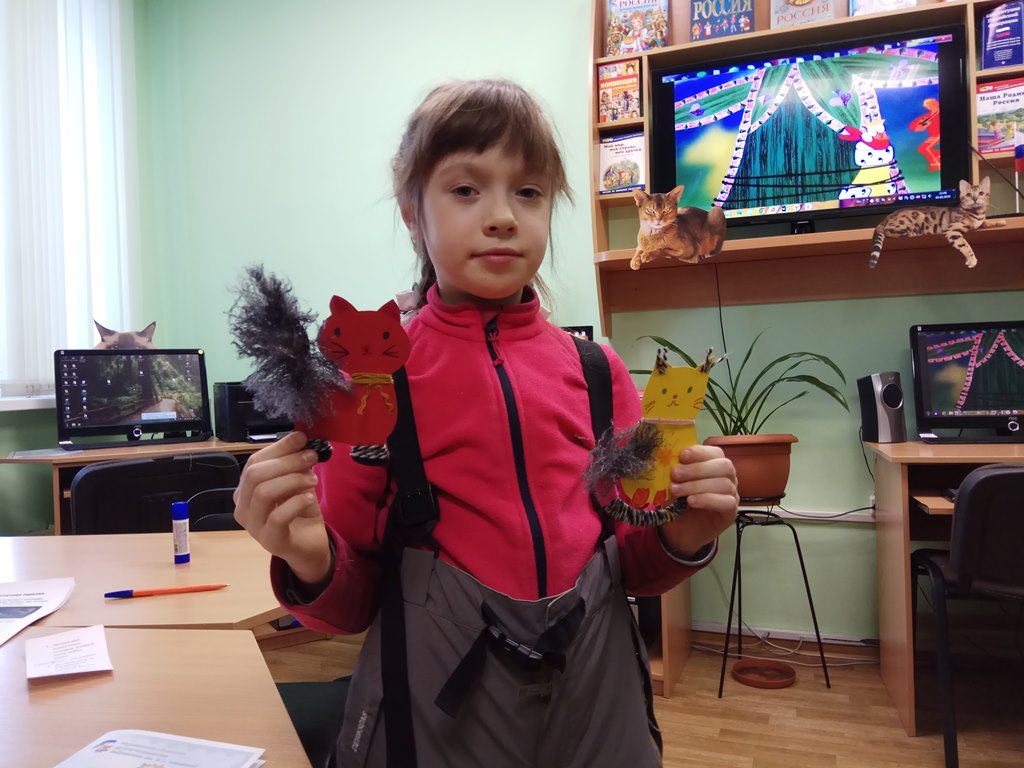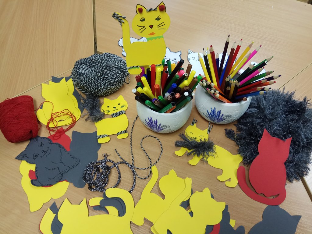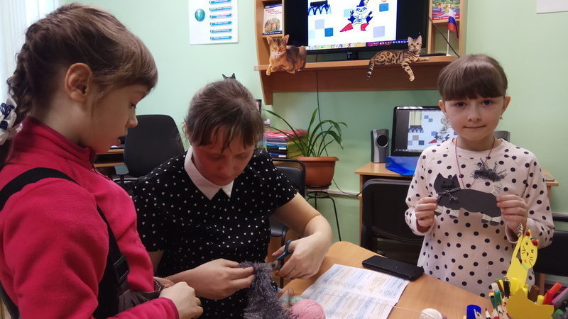 Для любителей рукоделия состоялся мастер-класс. Дети создали праздничные аксессуары и украсили ими бумажных котиков.