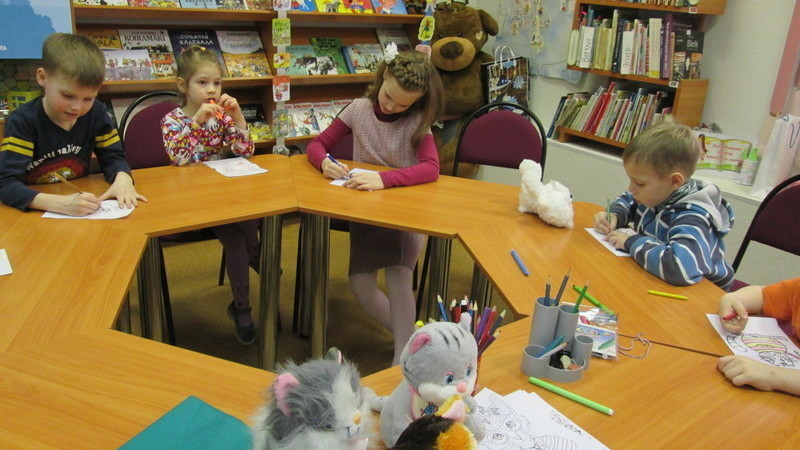 На базе библиотечного клуба «Детский английский» состоялось познавательно-развлекательное мероприятие The World of Cats («Мир кошек»). Дети посмотрели презентацию с элементами английского языка, посвященную интересным фактам из жизни кошек, выучили небольшое стихотворение My cat is black на английском языке, поиграли в игру Cats and Mice («Кошки-мышки»), сделали поздравительную открытку маме с изображением кошки.