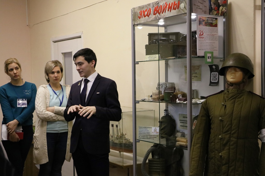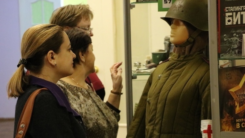 Большой интерес у присутствующих вызвал подробный и увлекательный рассказ Данила Дробота о предметах из личных коллекций членов ГВИР: униформе и снаряжении, объектах противохимической защиты, военной медицины и пищевого снабжения. Рядом с выставочной витриной посетители могут увидеть манекен в форме фронтовой медсестры.