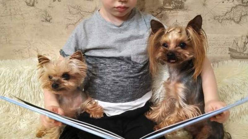 Костя – активный, творческий мальчик. Любит слушать сказки, играть, проводить время со своими двумя собаками. Это йорки Сьюзи и Глоба. Они помогают ему читать книжки!