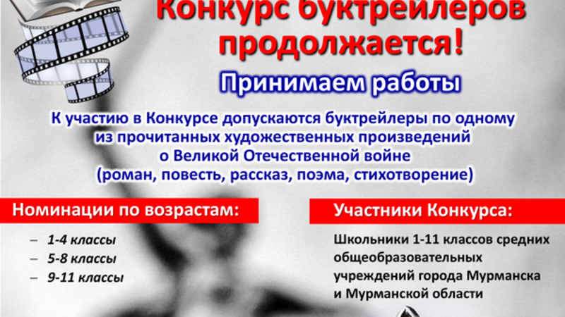 Отдел электронных ресурсов продолжает прием работ на Областной конкурс буктрейлеров #Оживляястраницы51. Читаем вслух! Снимаем вместе!, посвященный 75-летию Победы в Великой Отечественной войне