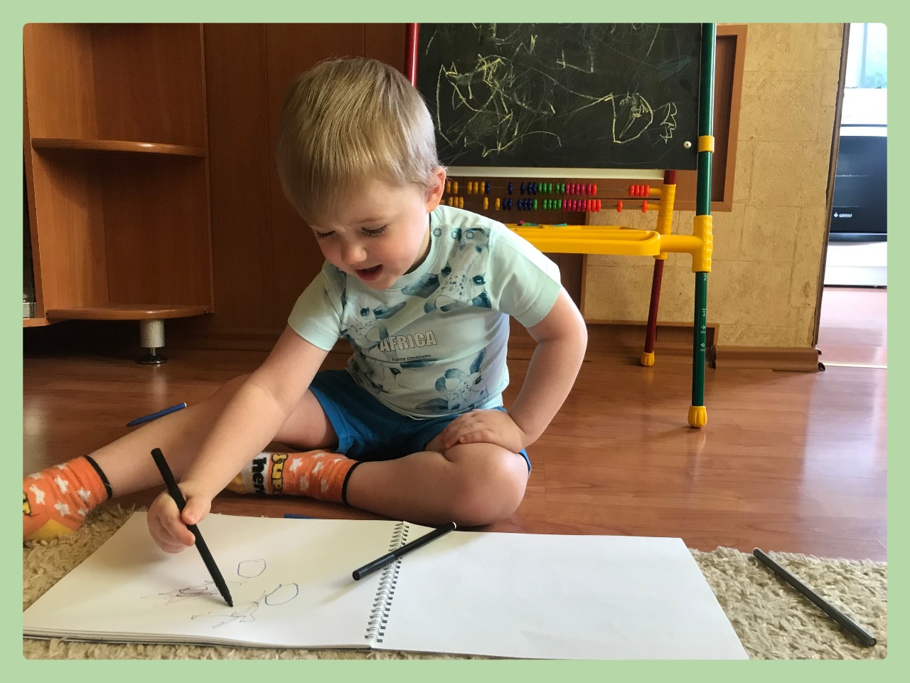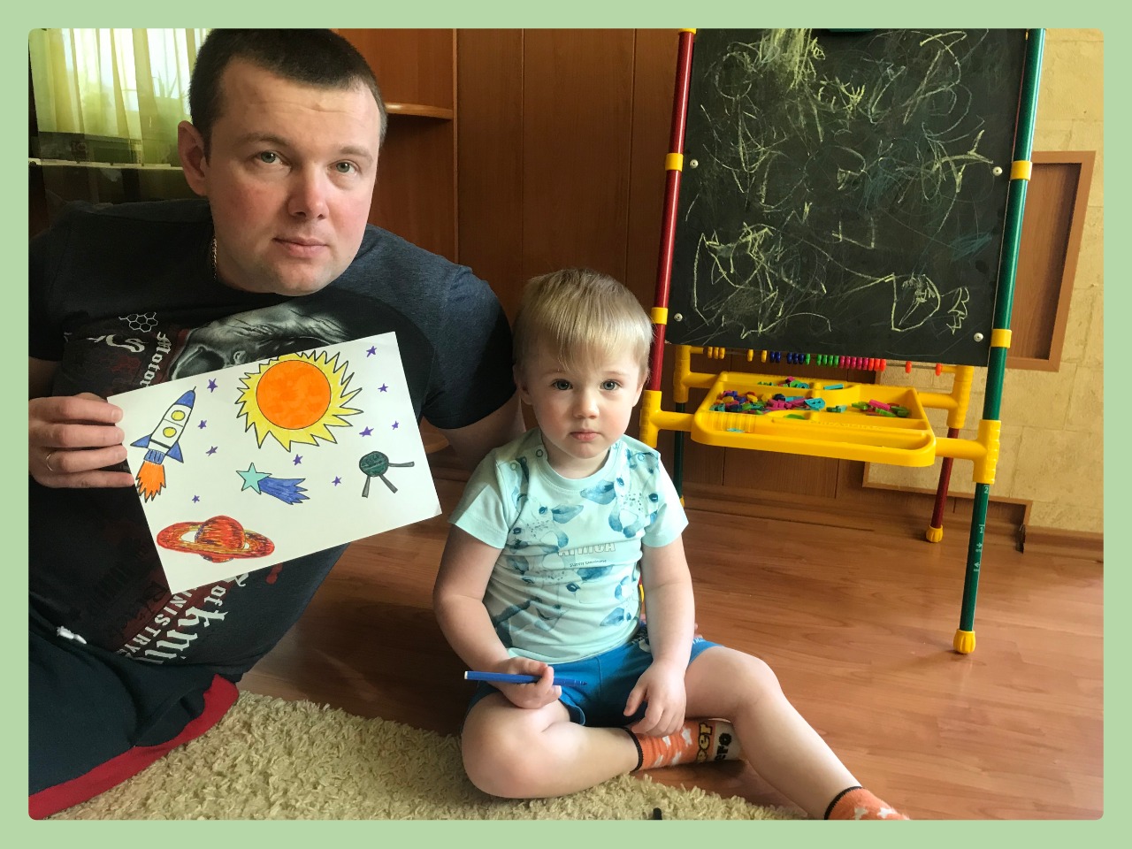 «Хочу передать привет своей любимой библиотеке! Я сижу дома с мамой и папой, так как садик пока не работает. Но я не скучаю, мы с папой любим рисовать.