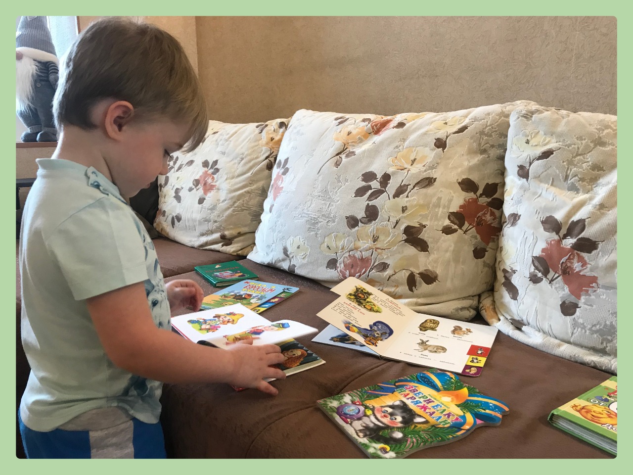 Ещё я очень люблю «читать» книжки. Пока мама мне их читает, я рассматриваю картинки.