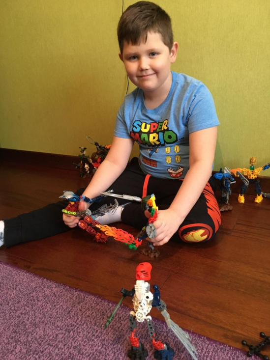 После уроков обед и отдых. Играет со своими любимыми роботами или LEGO.