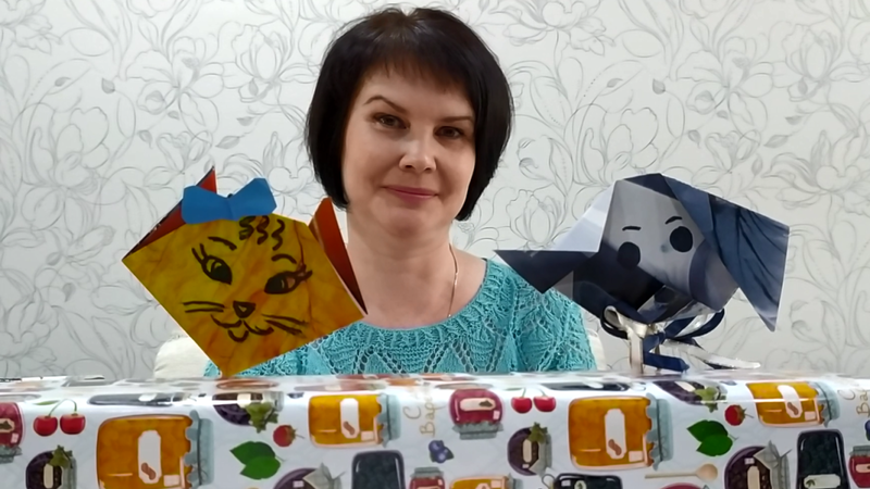 Кто в прошлый раз делал вместе в нами бумажные фигурки героев сказки в технике оригами, можете слушать и разыгрывать эти сценки с Песиком и Кошечкой.