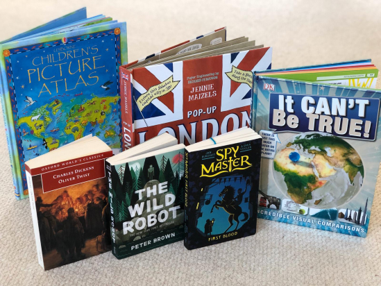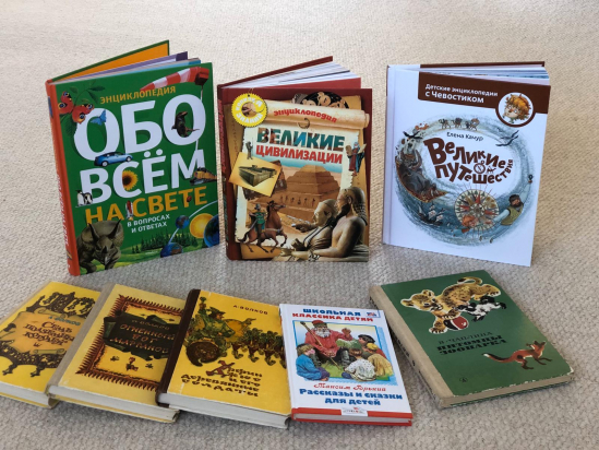 Из русских: серию книг Александра Волкова о приключениях в волшебной стране, «Навстречу белому медведю» Олега Бундура, «Питомцы зоопарка» Веры Чаплиной, различные энциклопедии.